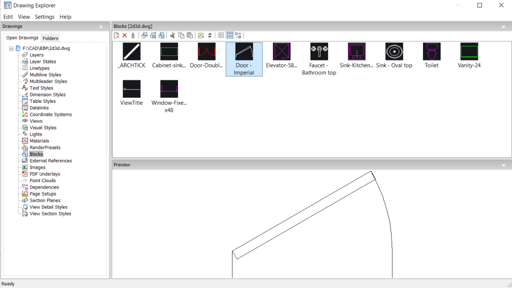 Sie erinnern sich vielleicht noch, dass der Zeichnungs-Explorer ein zentraler Ort zur Verwaltung aller Stil-Definitionen in Ihrer Zeichnung bietet. Der Zeichen-Explorer kann aber noch viel mehr. Er zentralisiert alle benannten Zeichnungsinhalte, einschließlich Blöcke, in einem einzigen Dialogfenster!